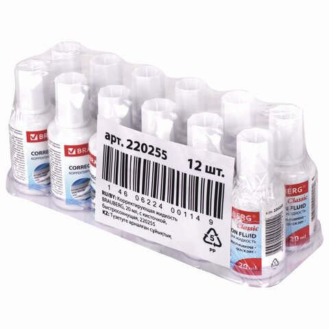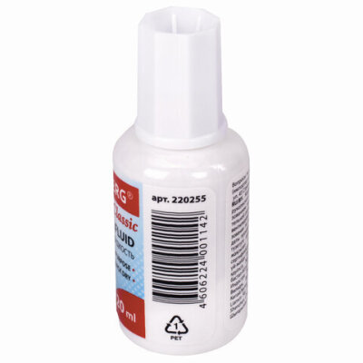 Корректирующая жидкость BRAUBERG "Classic", быстросохнущая, 20 мл, с кисточкой, 220255