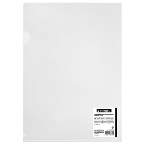Папка-уголок жесткая А4 BRAUBERG UNIVERSAL, прозрачная, 0,18 мм, со штрихкодом, 273054