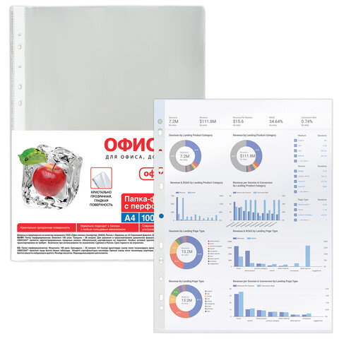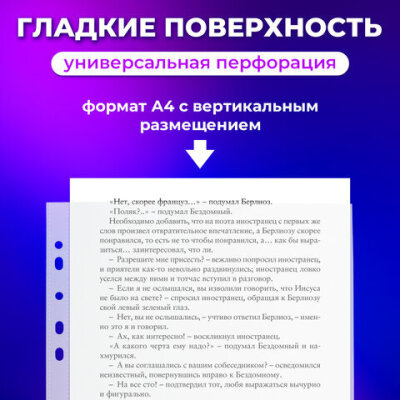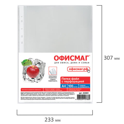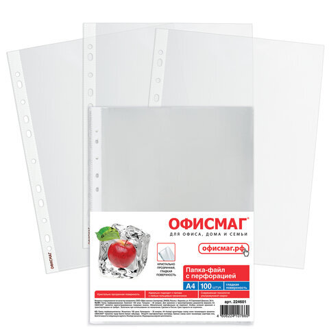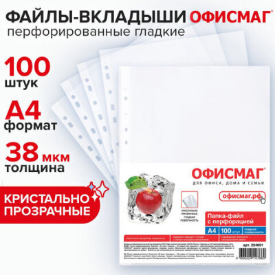 Папки-файлы перфорированные, А4, ОФИСМАГ "ПРЕМИУМ", комплект 100 шт., гладкие, 38 мкм, 224601