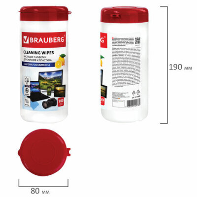• Чистящие влажные салфетки BRAUBERG предназначены для удаления пыли и загрязнений с экранов мониторов, ноутбуков, телевизоров, а также протирки пластиковых поверхностей - клавиатур, системных блоков, телефонных аппаратов, мебели. Имеют приятный аромат.