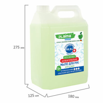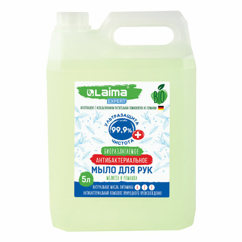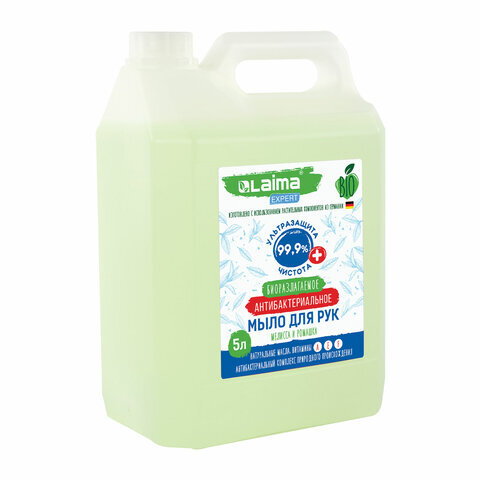 Мыло жидкое антибактериальное биоразлагаемое 5 л, LAIMA EXPERT "Мелисса и ромашка", 607764