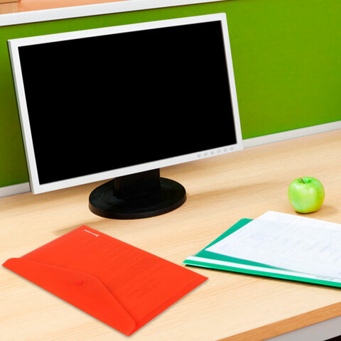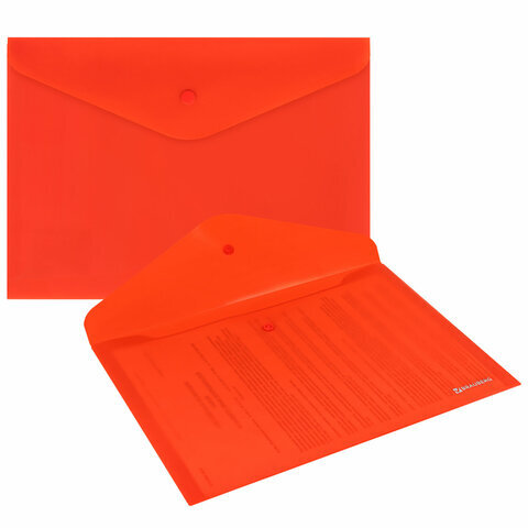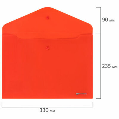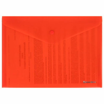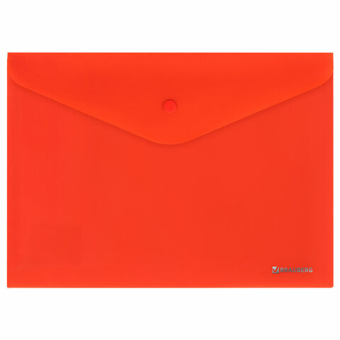 Папка-конверт с кнопкой BRAUBERG "SUPER", А4, матовая непрозрачная, красная, ПРОЧНАЯ 0,2 мм, 272878