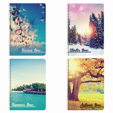 Тетрадь А4, 96 л., BRAUBERG, гребень, клетка, обложка картон, 4 СЕЗОНА, 403071