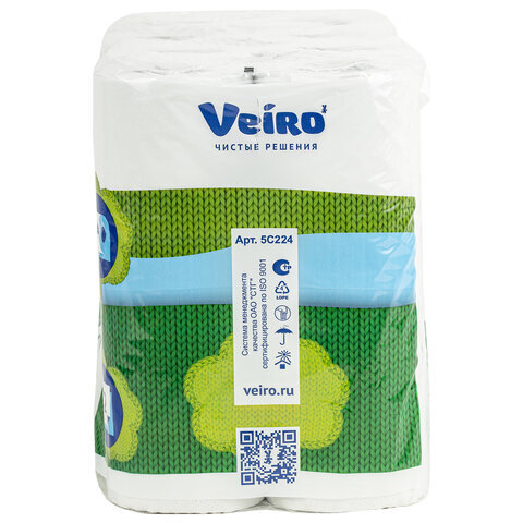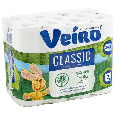 Бумага туалетная бытовая, спайка 24 шт., 2-х слойная (24х15 м), VEIRO Classic, белая, 5с224