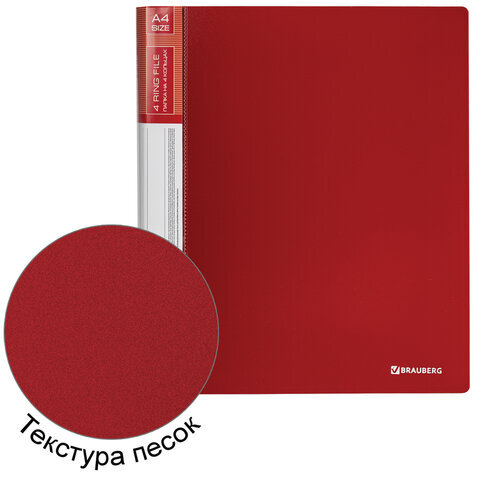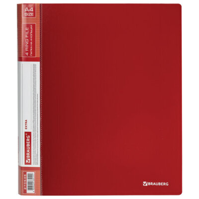 Папка на 4 кольцах, ширина 25 мм, BRAUBERG EXTRA, до 170 листов, КРАСНАЯ, 0,7 мм, 270545