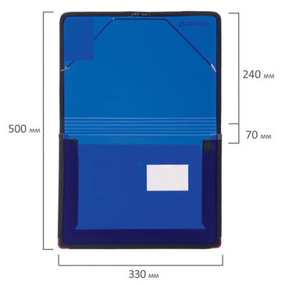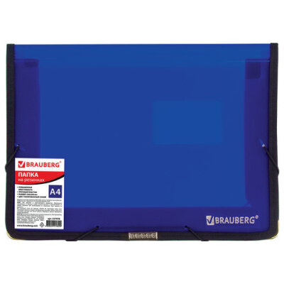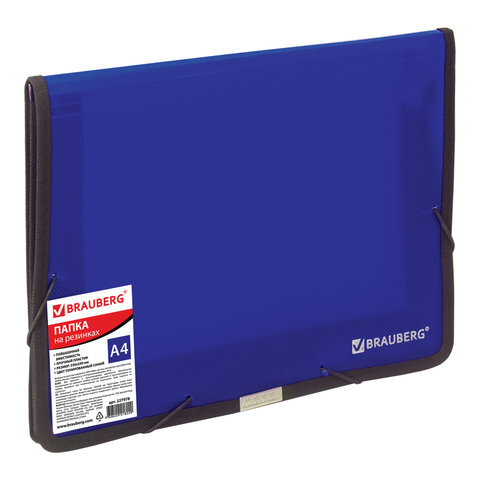 Папка на резинках BRAUBERG, широкая, А4, 330х240 мм, синяя, до 500 листов, 0,6 мм, 227978