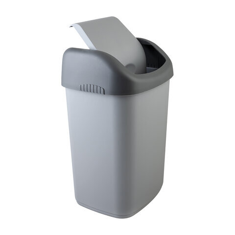Ведро мусорное с КРЫШКОЙ (качающейся) 14 литров, ПОДВЕСНОЕ, 42х27х21 см, серый/графит, 327, 433270065