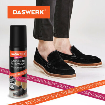 Высокоэффективная жидкая краска DASWERK для обновления и восстановления внешнего вида обуви и других аксессуаров из замши и нубука. Эффективно обновляет первоначальный цвет изделия, закрашивает и маскирует выцветшие участки.