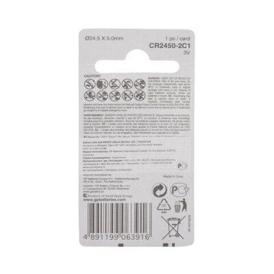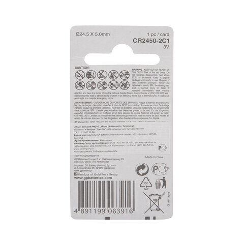 Литиевые батарейки GP размера CR2450 предоставляют высокий выходной уровень, что делает их идеально подходящими для наручных часов, фотографического оборудования, калькуляторов, компьютерного оборудования.