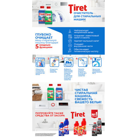 TIRET "Цветочный" комплексно очищает стиральную машину.