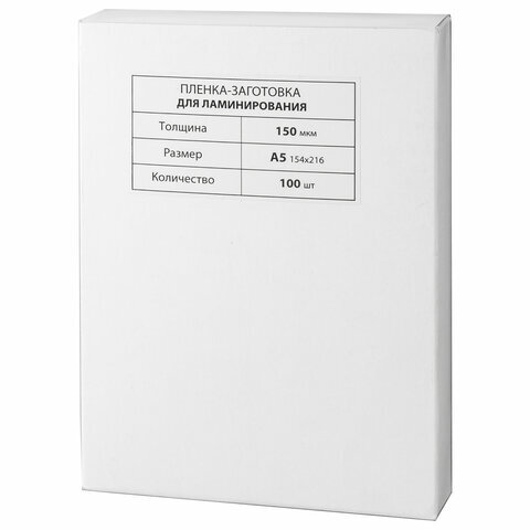 Пленки-заготовки для ламинирования МАЛОГО ФОРМАТА, А5, КОМПЛЕКТ 100 шт., 150 мкм, BRAUBERG, 531783