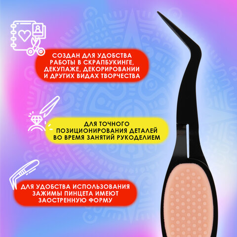 Пинцет обратного действия для рукоделия и хобби ОСТРОВ СОКРОВИЩ из нержавеющей стали с эргономичными ручками создан для удобства работы в скрапбукинге, декупаже, декорировании и других видах творчества.