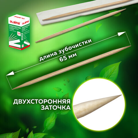 Зубочистки деревянные LAIMA, КОМПЛЕКТ 1000 штук, в индивидуальной бумажной упаковке, 604771
