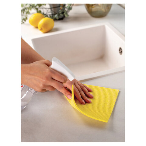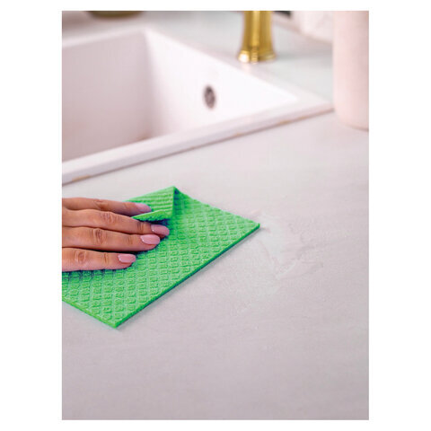Не оставляют следов и разводов, отлично впитывают влагу и грязь, идеально подходят для влажной уборки. Состоят из 30% хлопка и 70% целлюлозы. Устойчивы к моющим средствам. Имеют плотную и упругую структуру.Впитывают влагу на 200% больше собственного веса.