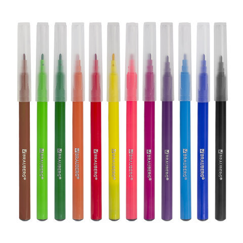 • Набор фломастеров BRAUBERG "PREMIUM" с насыщенными, яркими цветами в количестве 12 штук. Чернила на водной основе практически не имеют запаха, не токсичны и легко смываются с большинства материалов и тканей.