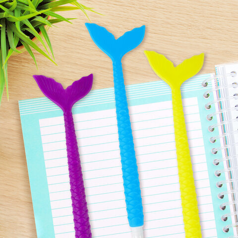 Ручка фигурная шариковая ЮНЛАНДИЯ "Русалка", мягкий силиконовый корпус, ассорти, СИНЯЯ, пишущий узел 0,7 мм, 143777