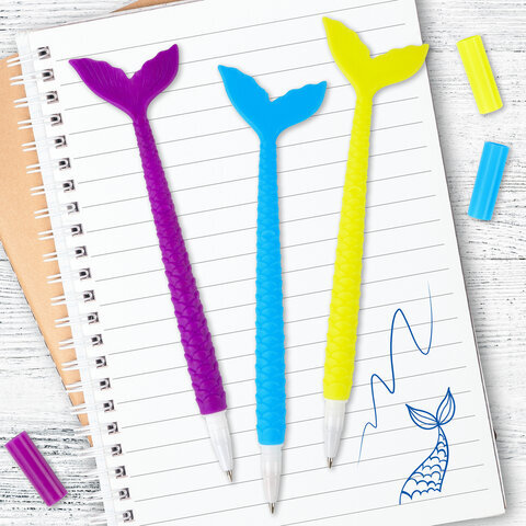 Шариковая ручка ЮНЛАНДИЯ "Русалка" с мягким силиконовым корпусом.
