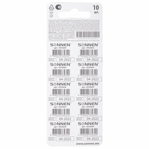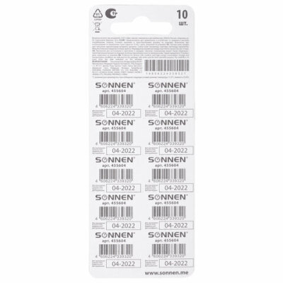 Батарейка алкалиновая "таблетка" 1 шт., SONNEN Alkaline, 177A (G4, LR66), блистер, отрывной блок, 455604