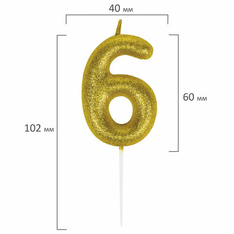 Свеча-цифра для торта "6" золотая с глиттером, 6 см, ЗОЛОТАЯ СКАЗКА, на шпажке, в блистере, 591419