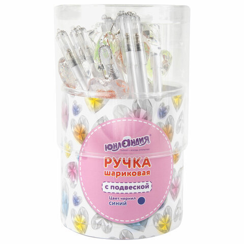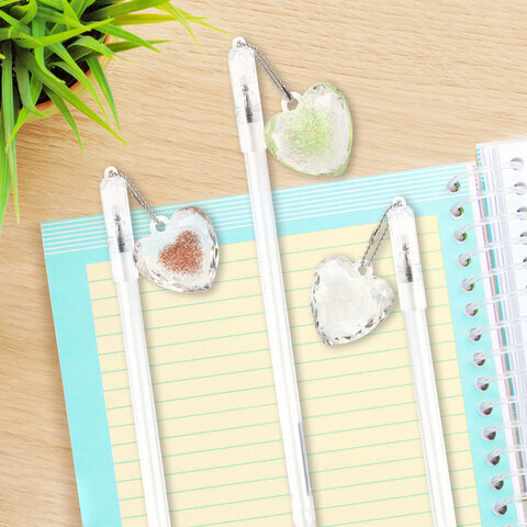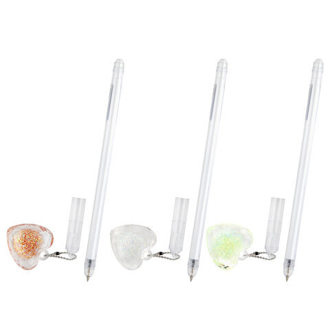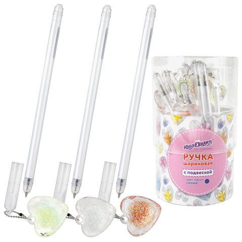 Ручка с подвеской шариковая ЮНЛАНДИЯ "Хрустальное сердце", детали ассорти, СИНЯЯ, пишущий узел 0,7 мм, 143792