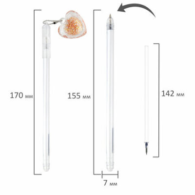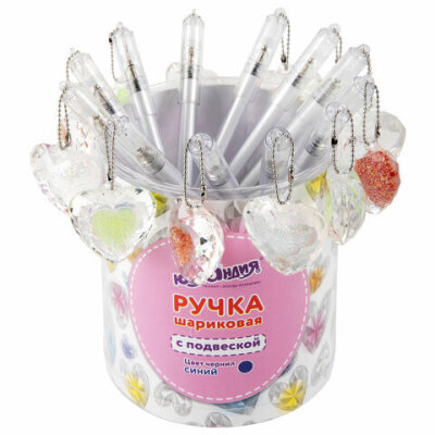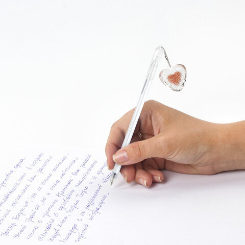 Шариковая ручка ЮНЛАНДИЯ "Хрустальное сердце" с сияющем сердцем на корпусе.