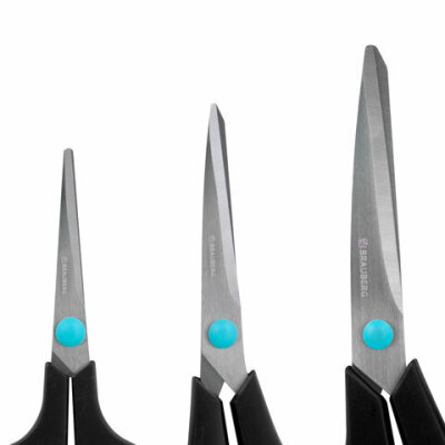 • Набор универсальных ножниц BRAUBERG. Эти ножницы идеально подходят для резки бумаги, картона и других материалов, что делает их незаменимыми как в офисе, так и дома.