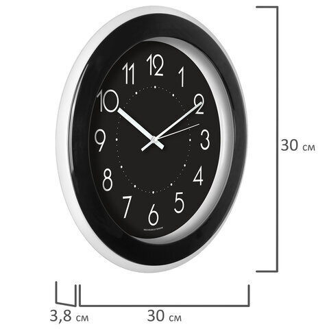 Часы настенные TROYKATIME (TROYKA) 122201202, круг, черные, черная рамка, 30х30х3,8 см