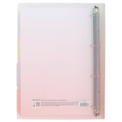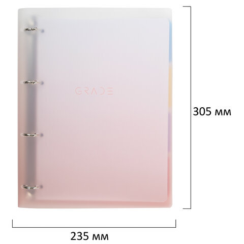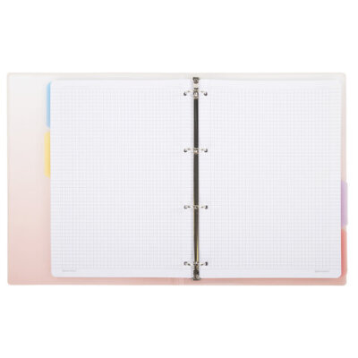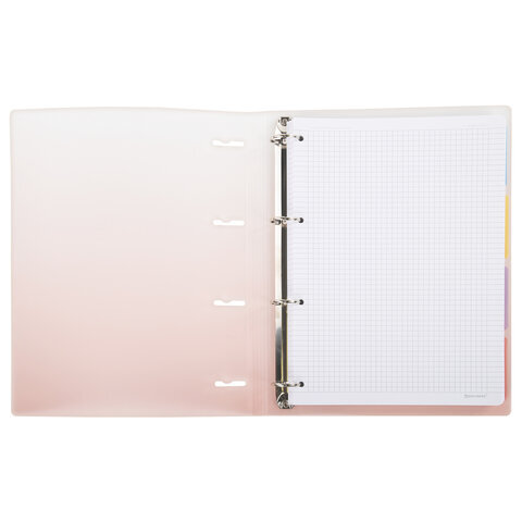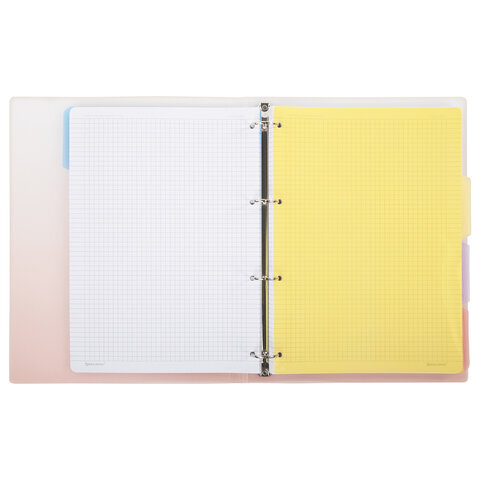 • Тетрадь на кольцах с пластиковой градиентной обложкой станет незаменимым помощником в учебе и работе. Импортный кольцевой механизм позволяет легко сменить внутренний блок.
