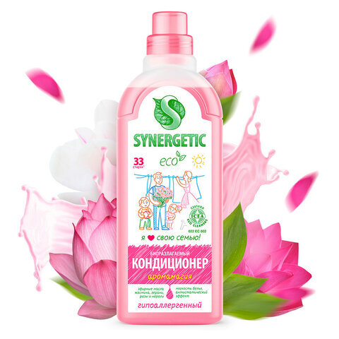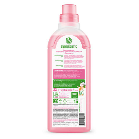 Кондиционер-ополаскиватель для белья 1 л SYNERGETIC "Аромамагия", гипоаллергенный, концентрат, 110100