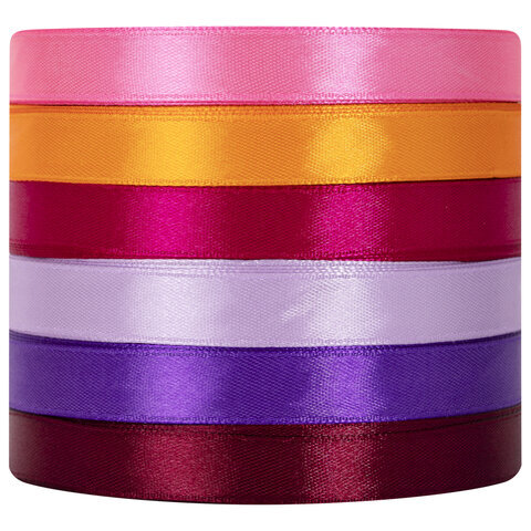 Лента атласная ширина 12 мм, набор №2 6 цветов по 23 м, BRAUBERG, 591500