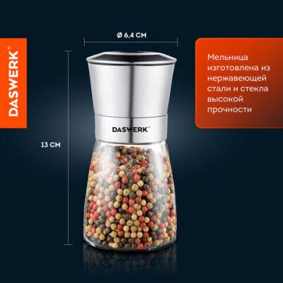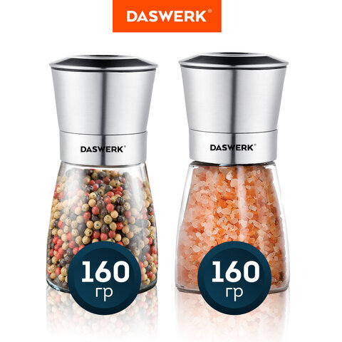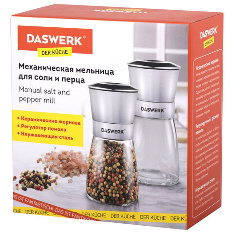 Мельница для специй, НАБОР 2 штуки, механические, нержавеющая сталь, DASWERK (ДАСВЕРК), 456628