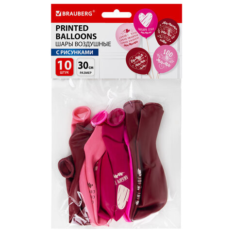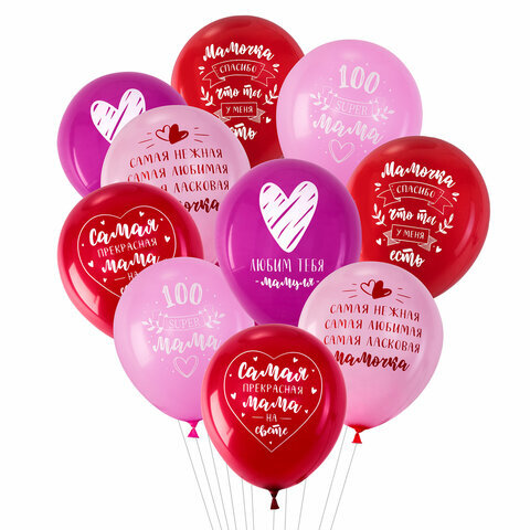 Шары воздушные 30 см с рисунком "Для мамы", КОМПЛЕКТ 10 штук, ассорти, BRAUBERG, 591895