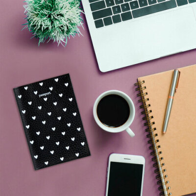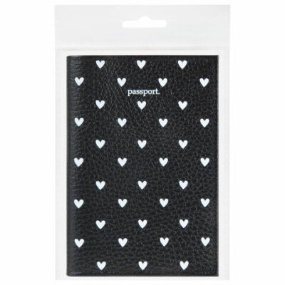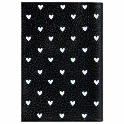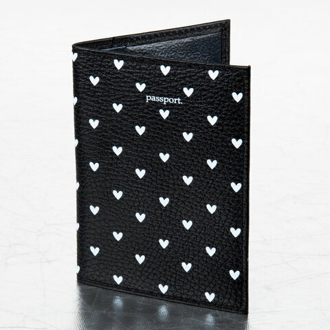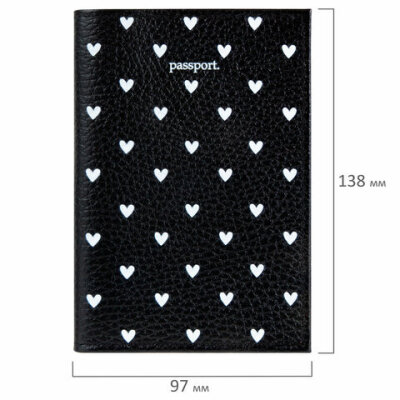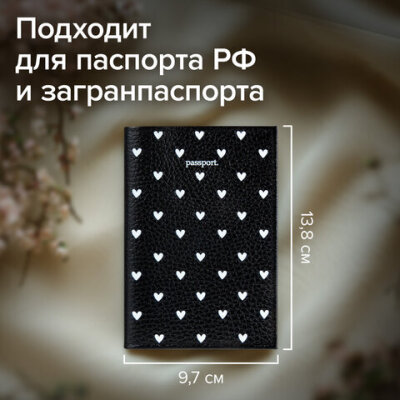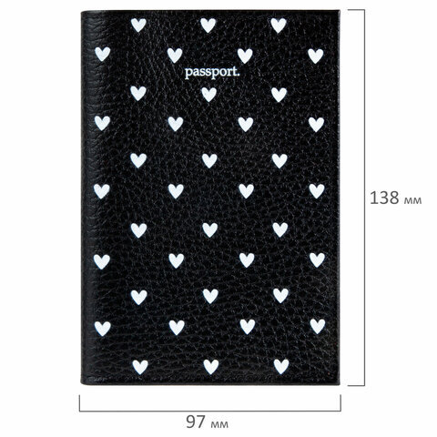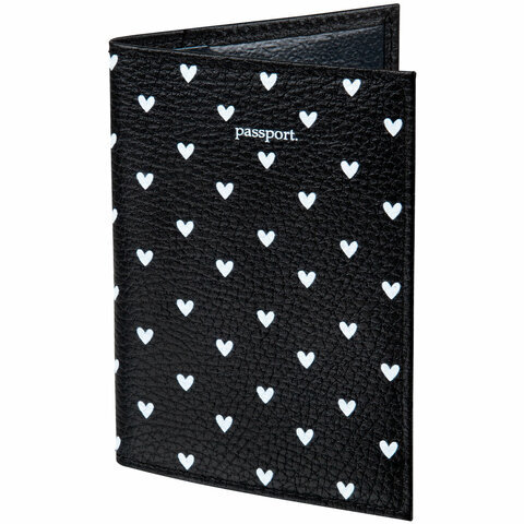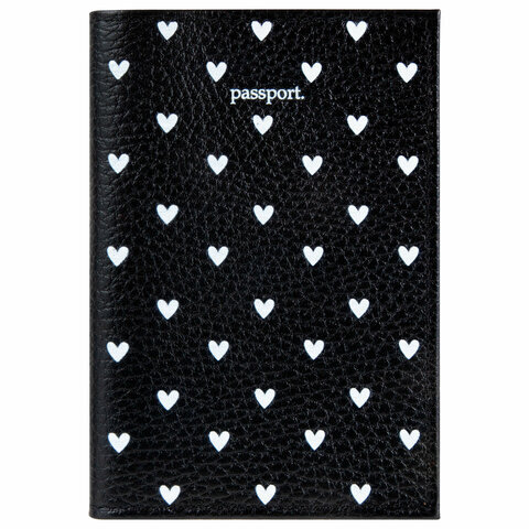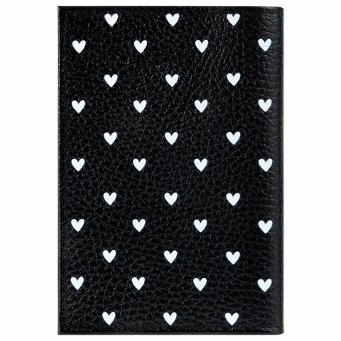 Обложка для паспорта натуральная кожа флоттер, принт "Сердечки", цвет черный, BRAUBERG, 238867