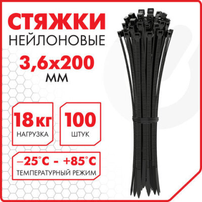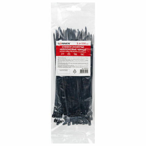 Стяжки (хомуты) нейлоновые SONNEN используются при проведении электромонтажных работ для крепления кабелей, проводов и других предметов к несущей поверхности или для соединения между собой. Такие стяжки также используются для бытовых и хозяйственных нужд.