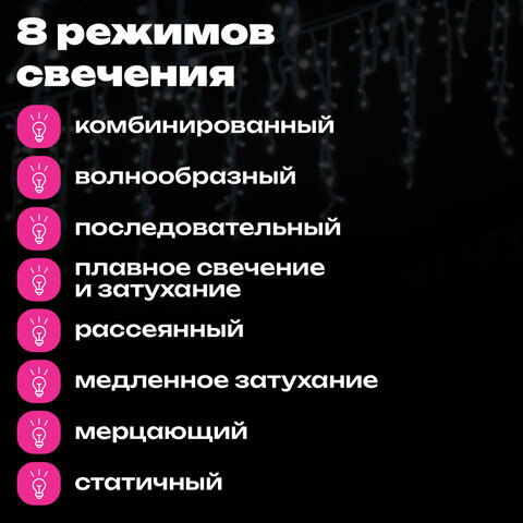 Электрогирлянда "Бахрома" – один из самых популярных видов гирлянд сегодня. Мягкий, но насыщенный свет этих украшений помогает создать уютное свечение в помещении.