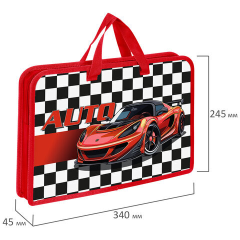 Папка на молнии с ручками ЮНЛАНДИЯ А4, 1 отделение, пластик, ширина 45 мм, Auto, 272150
