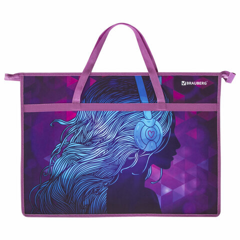 Папка для рисунков и чертежей с ручками BRAUBERG А3, пластик, молния сверху, "Melody", 228201