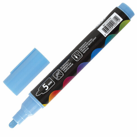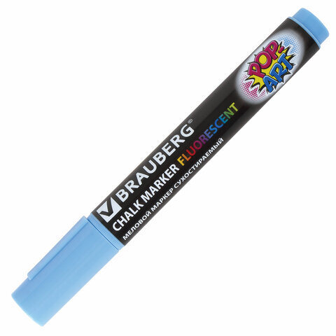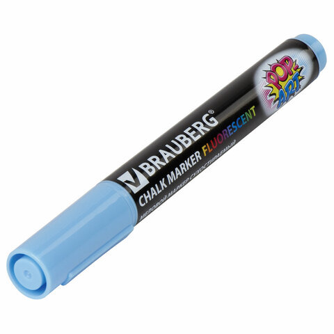 Маркер меловой "POP-ART" ГОЛУБОЙ, 5 мм, стираемый, для гладких поверхностей, BRAUBERG, 151533
