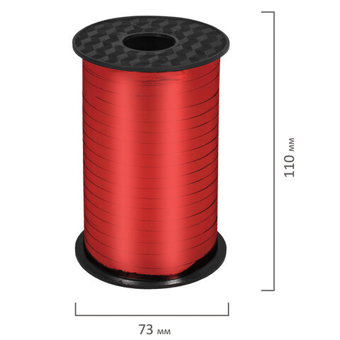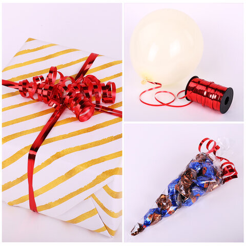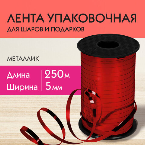 Лента упаковочная декоративная для шаров и подарков, металлик, 5 мм х 250 м, красная, ЗОЛОТАЯ СКАЗКА, 591817