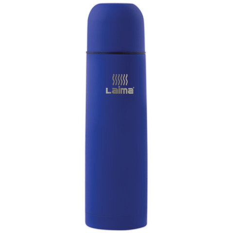 Термос LAIMA классический с узким горлом, 0,75 л, нержавеющая сталь, синий, 605123