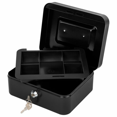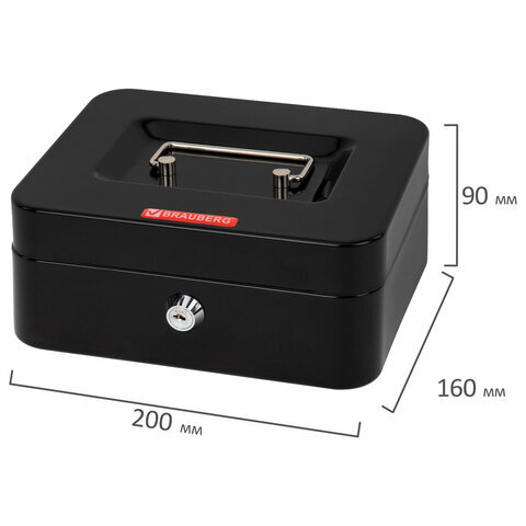 Ящик для денег, ценностей, документов, печатей, 90х160х200 мм, ключевой замок, черный, BRAUBERG, 291350