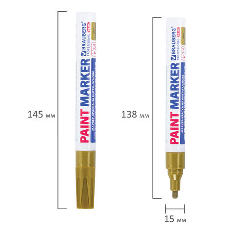 • Маркер-краска лаковый BRAUBERG предназначен для маркировки различных материалов в промышленных условиях: бетона, дерева, стекла, металла, резины, пластика. Заправлен краской с усиленной формулой на нитро-основе РМ-14.
