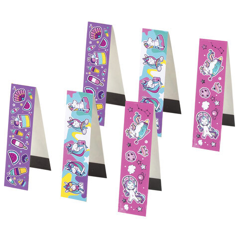 Закладки для книг с магнитом "ЕДИНОРОГИ", набор 6 шт., блестки, 25x196 мм, ЮНЛАНДИЯ, 111638