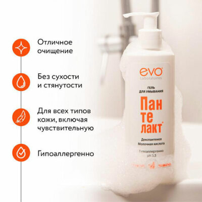 Гель для умывания Пантелакт EVO с молочной кислотой для всех типов кожи.