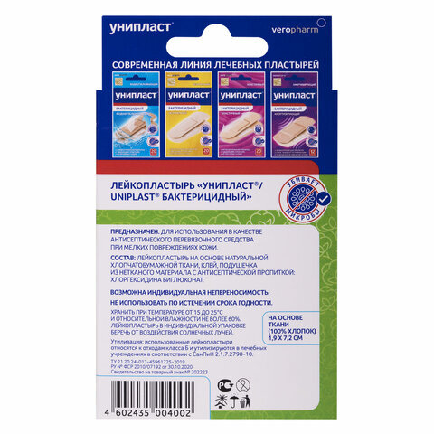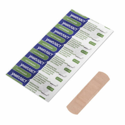 Бактерицидные тканевые лейкопластыри УНИПЛАСТ в современной упаковке в виде набора. В комплекте – 20 пластырей.