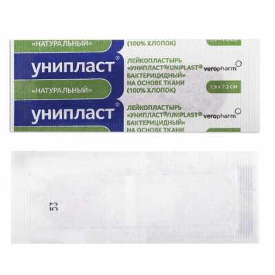 Набор лейкопластырей бактерицидных 20 шт., УНИПЛАСТ, 1,9х7,2 см, натуральные, 20024374