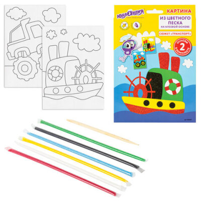 Набор для творчества "Картина из цветного песка", "Транспорт", 2 самоклеящиеся основы 20х15 см, 662367
