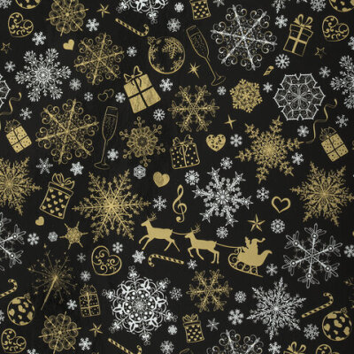 Бумага упаковочная новогодняя НАБОР 3 шт. "Black&Gold", С ЭФФЕКТАМИ, 70х100 см, ЗОЛОТАЯ СКАЗКА, 592190