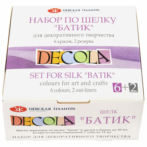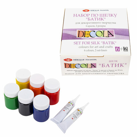 Краски по ткани акриловые "Декола" "Батик по шелку", НАБОР 6 цветов по 50 мл + резерв 2 тубы по 18 мл, Невская Палитра, 4441448