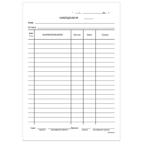 | Вид бланка | Накладная |